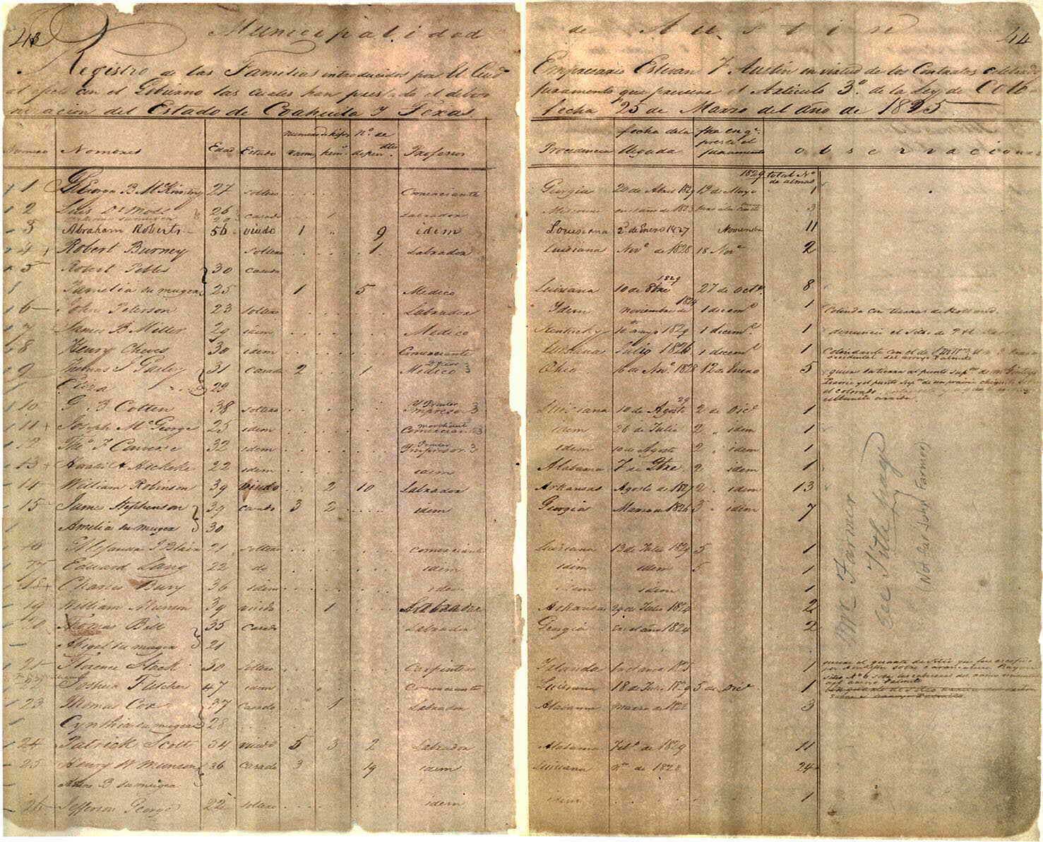 FACING PAGES FROM AUSTIN'S REGISTER OF FAMILIES WITH HENRY W. MUNSON ENTRY (THIRD FROM BOTTOM)